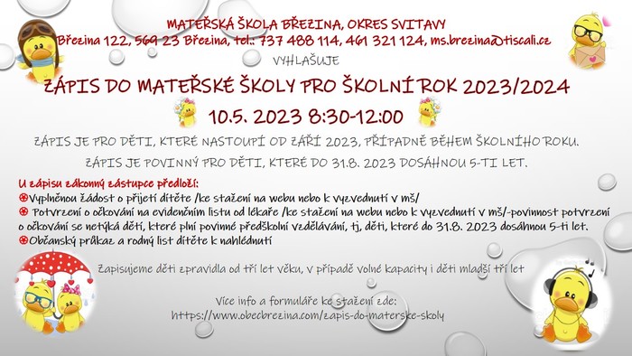 Úvod > Mateřská škola Březina > Aktuality MŠ Březina > Zápis do MŠ Březina