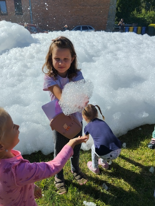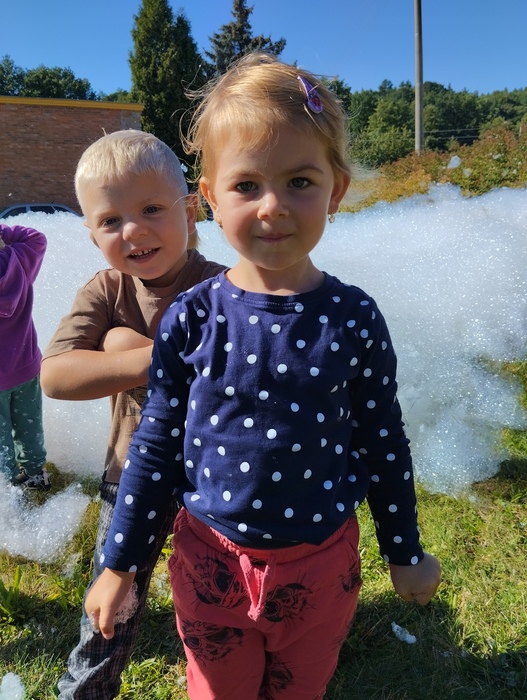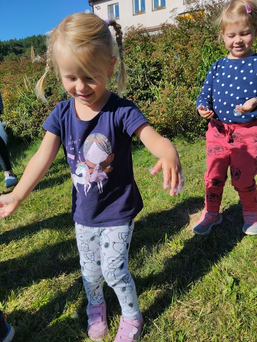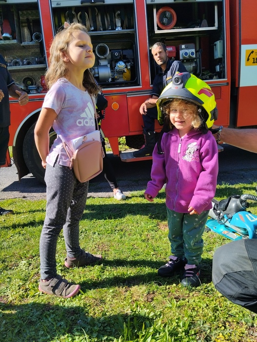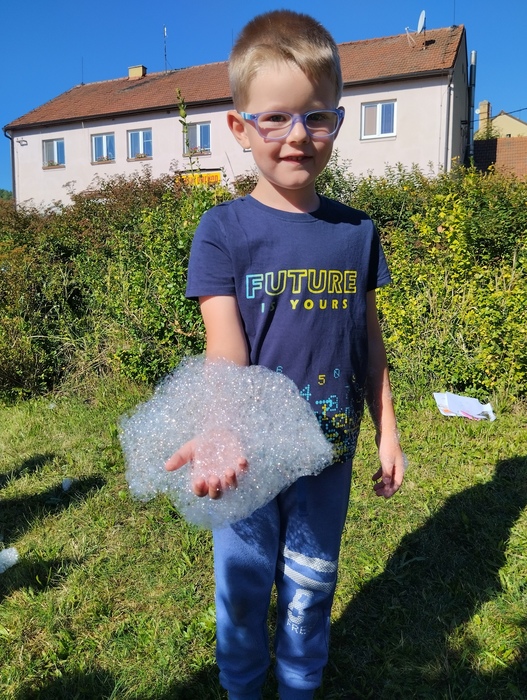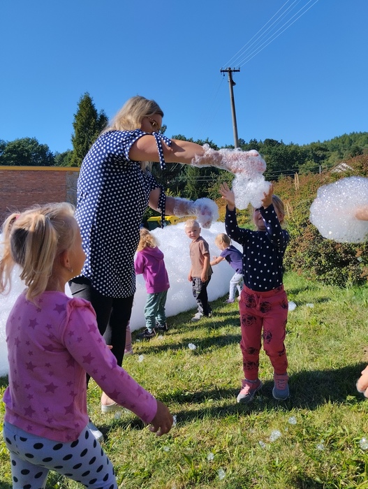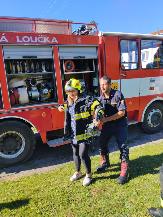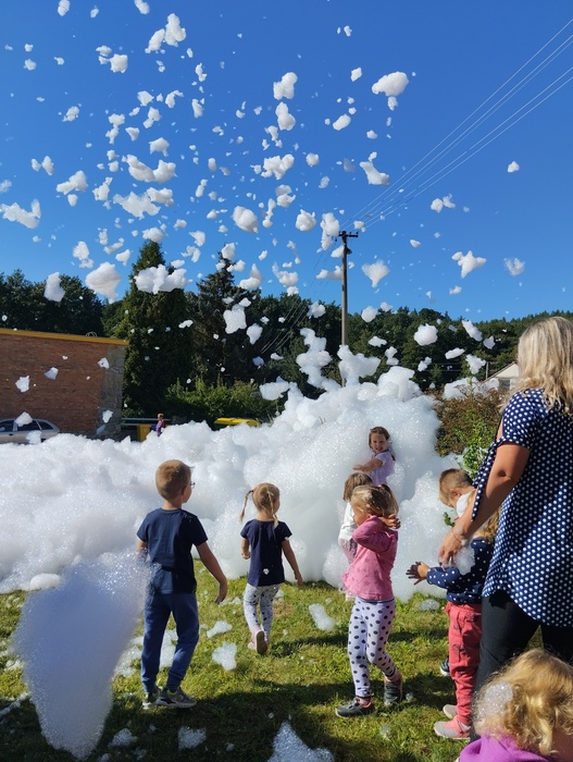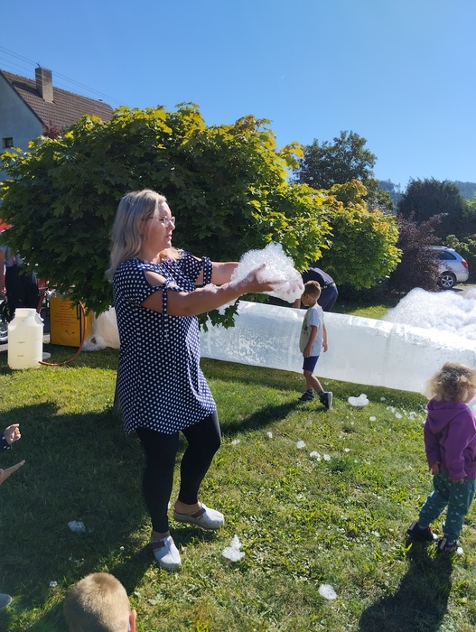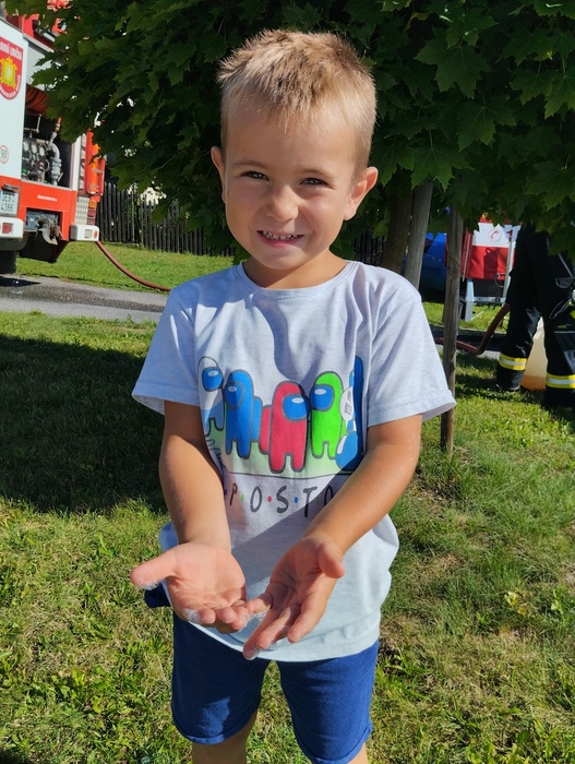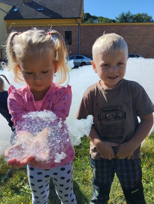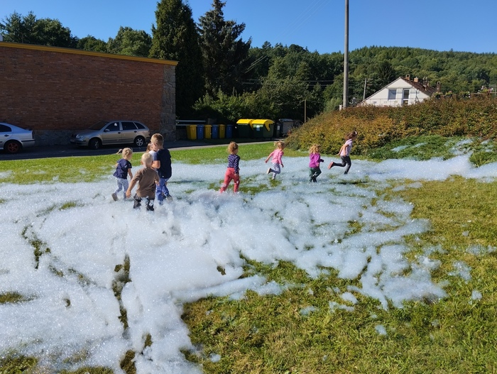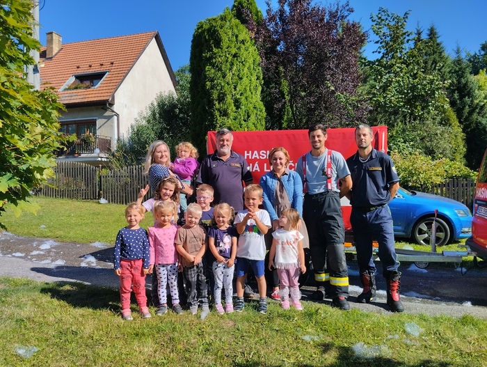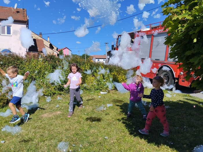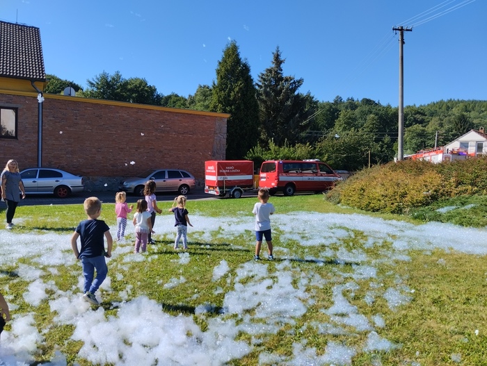 Úvod > Mateřská škola Březina > Fotogalerie MŠ > Hasiči z Dlouhé Loučky a pěna